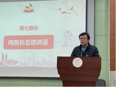 会议结尾,冉明东副院长进行了本次党日活动的总结讲话。冉院长对在座的同志们提出了三点期望:第一,要加强思想学习,时刻关心国家方针战略。第二,要将学习的理论落实行动,将学业作为大学期间的重中之重,在生活中严格遵守学校的规章制度,还特别鼓励大家要带头节能减排,为国家的“双碳”目标做出贡献。第三,要加强体育锻炼,增强体质,拥有良好的体魄,为社会和国家更好地发光发热。2021岁末已至,院长最后祝愿大家吸收过去一年的经验,在新的一年里获得更好的成长。