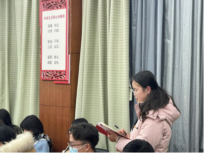 在对系列文件进行深入学习,并聆听了陈楠老师的精彩党课后,预备党员余林昕、倪小雅和刘译璘同志就本次学习主题分享了个人学习感悟。余林昕同志认为这次党日活动让她深受鼓舞与启发,在对活动学习内容进行简单总结后,坚定了自己不断向优秀共产党员靠拢的决心。倪小雅同志则对陈楠老师的精彩党课发表了感悟,她认为中国精神对当代青年的激励作用无可替代,愿意在之后付出更多时间精力深入学习建党以来的中国精神。刘译璘同志也对前两位同志的发言表示认同,并特别强调依法治国对社会主义建设的重大意义,认为当代青年必须做到知法懂法、遵法守法。