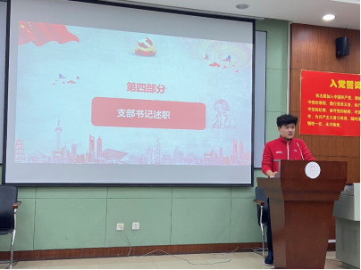 之后,支部书记徐乐同志进行了述职,总结了党支部过去一年主要工作的落实情况,特别是在学党史及办实事方面成果多多。接下来,党支部将继续发挥好教育、管理作用,争取以更多样创新的形式做好学生的思想引路人,提供更多学思践悟的机会,启智润心,共同进步。