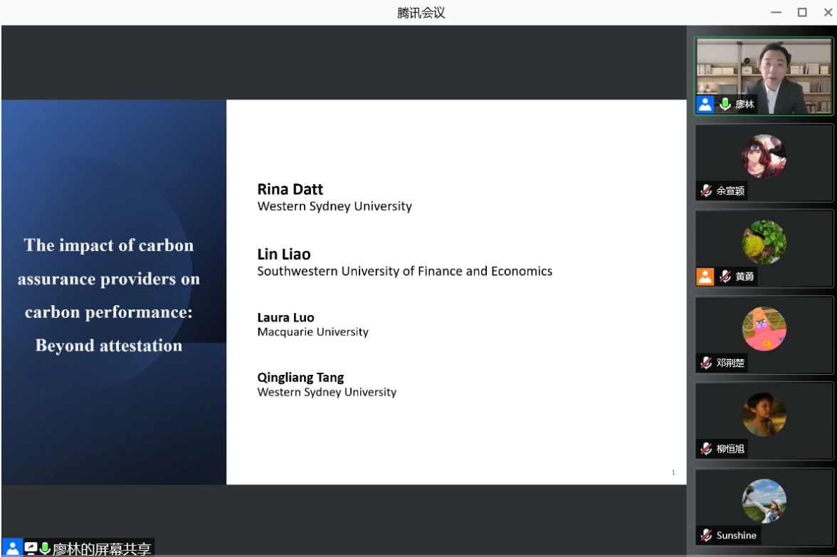 2021年1月6日,“中南·会计Seminar”第110期在腾讯会议线上成功举行。西南财经大学廖林副教授应邀为我院师生作了题为《The impact of carbon assurance providers on carbon performance: Beyond attestation》的学术报告。