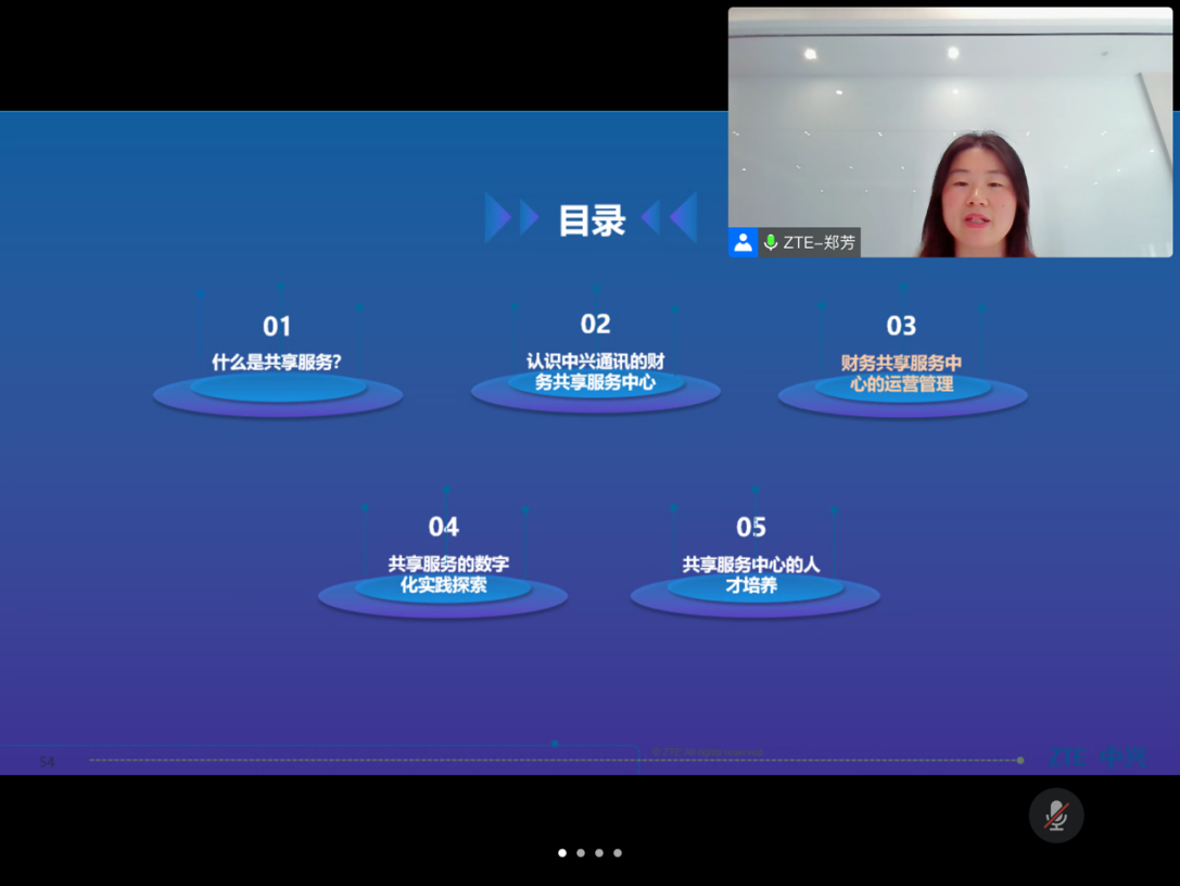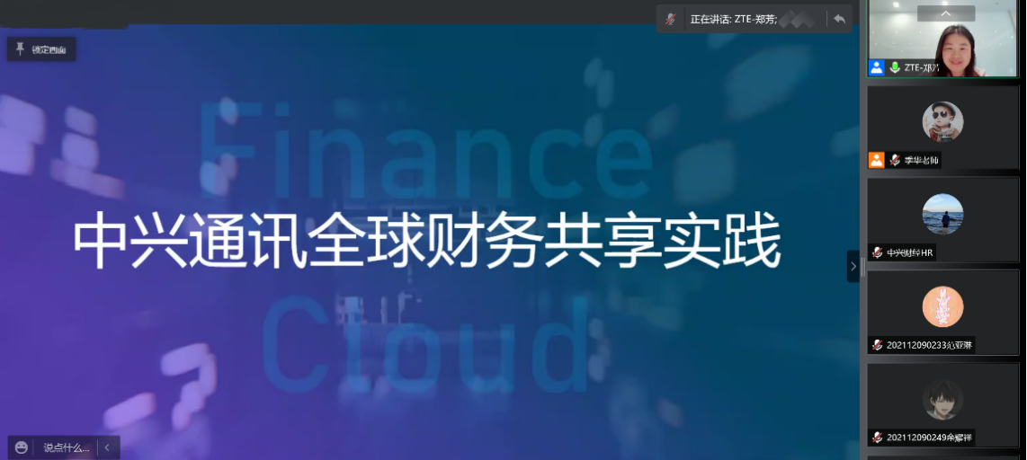 2022年4月8日8:00,中兴通讯股份有限公司财务云部长郑芳女士与我院会计专硕通过“腾讯会议”平台,进行了主题为“中兴通讯全球财务共享实践”的课程分享,该课程由专硕导师组组长季华副教授主持。
