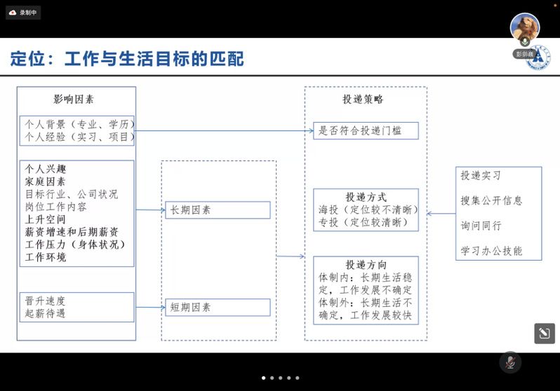 最后,林嘉沁围绕“秋招中的选择”进行了分享。她结合自身实习求职感受,阐述了在求职过程中如何权衡薪资待遇、地理位置、行业发展、工作氛围与自身性格等因素,最终做出最适合自己的就业选择。她认为,开心健康是求职选择的重要因素,希望同学们不要有太大的压力,并祝愿各位同学日后都能拥有满意的工作氛围。