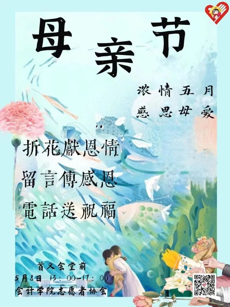5月8日,正值一年一度的母亲节,银河志愿者协会秉承“会传爱心,计予奉献”的服务宗旨,在首义校区开展“浓情五月,感恩母爱”志愿活动,为同学们提供平台和机会,让大家通过“折花献恩情”、“留言传感恩”、“电话送祝福”等方式,敞开心扉,袒露心声,向母亲表达自己的感激和爱意。(文/图 杨蓦)