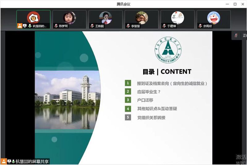 5月12日晚7点,银河2020级审硕通过腾讯会议平台,开展“在青春的赛道上奋力奔跑”毕业生主题教育暨派遣知识培训会,培训会由研究生辅导员杭慧喆主持。