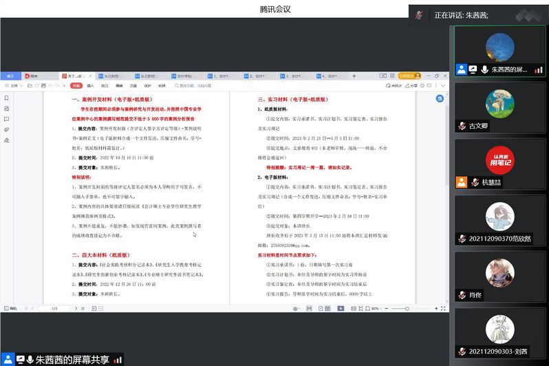会上,研办主任、研究生辅导员张昭妍为同学们做暑假安全教育,提醒大家提高安全防范意识和能力,切实保护自己的人身和财产安全,度过一个安全愉快的假期。教学工作秘书朱茜茜讲解了专硕毕业材料提交审核的注意事项,要求大家提前准备、保质保量完成。