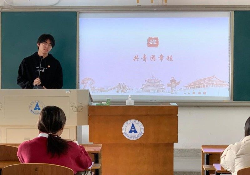 第一阶段,首先,由法学院团委组织部基层工作部部长古文韬讲述共青团的入团程序、条件以及发展历程。然后,由银河团委组织部基层工作部部长陈濯带领学员学习共青团章程、组织原则和三会两制一课制度。