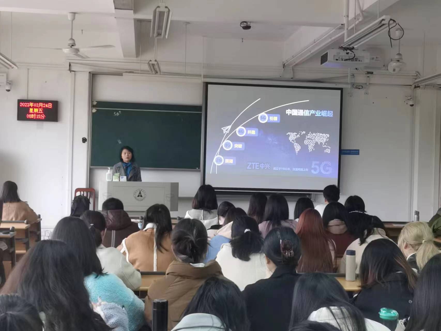 2023年3月24日上午,中兴通讯集团副总裁、财经管理部主任、中国注册会计师王秀红女士在文添楼409教室为会计专业硕士讲授了《中兴财经全球化之路——不确定性中寻找确定性》。课程由专硕导师组组长季华副教授主持,90余位2022级会计专硕同学参加学习。
