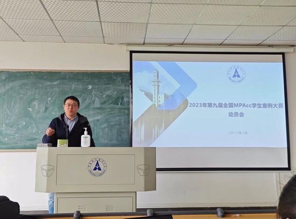首先由王昌锐副院长对2023年第九届中国MPAcc学生案例大赛的基本情况进行了简要介绍。本届大赛将于2023年3月至6月由上海财经大学承办,全部赛程分初赛第一阶段及第二阶段、复赛、决赛四个阶段,设东北、华北、华东、华中、华南、西南、西北七个赛区。王院长对案例大赛的时间节点、案例报告的格式规范、框架结构等做出特别强调,也对奖项设置和历年参赛情况等方面为同学们进行了详细的讲解。希望参赛同学以高度的责任感和积极的态度,认真对待即将面临的挑战,并做好充分的准备,以确保取得更好的成绩。