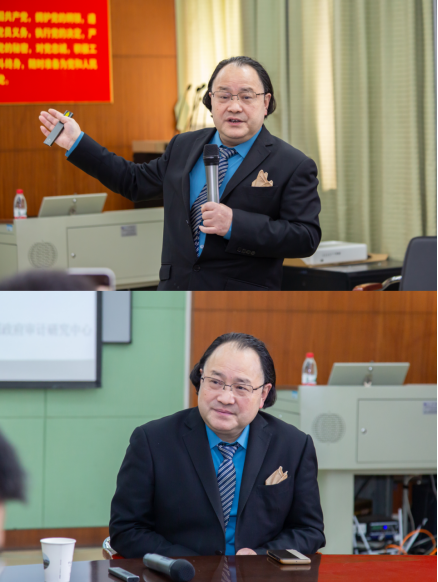 其次,蔡教授进一步推进了审计理论创新发展的若干思考,提出了用中国式现代化思考服务审计理论与创新发展体系,以及围绕构建新发展格局来推动高质量发展等相关问题,并给出独特的思考和见解。同时,蔡教授也进一步阐述了中国审计领域应围绕发展全过程民主和全面依法治国等理论开展相关研究。蔡教授深入浅出的讲解和独具慧眼的观点以及热情洋溢的风格使硕博研究生及教师学者们如沐春风。