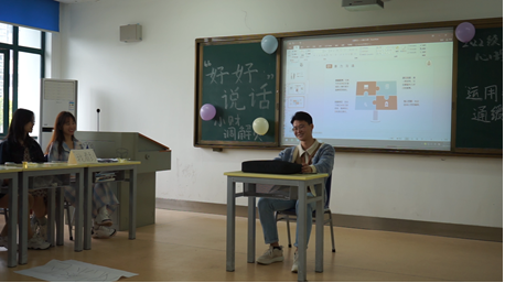 活动正式开始之后,潘雅囡同学协助主持人洪胜俊带领大家进行了“撕纸”和“雕塑家与泥巴”两个游戏。这两个游戏的设计基于认知行为理论,旨在通过两个与沟通相关的小游戏,告诉同学们沟通技巧或用语的限制性。填补同学们对沟通作用与本质上的认知空白,让同学们了解沟通的作用实际上是弥补各方的信息差,以及缺少沟通、无效沟通以及不当言语会造成什么样的状况。