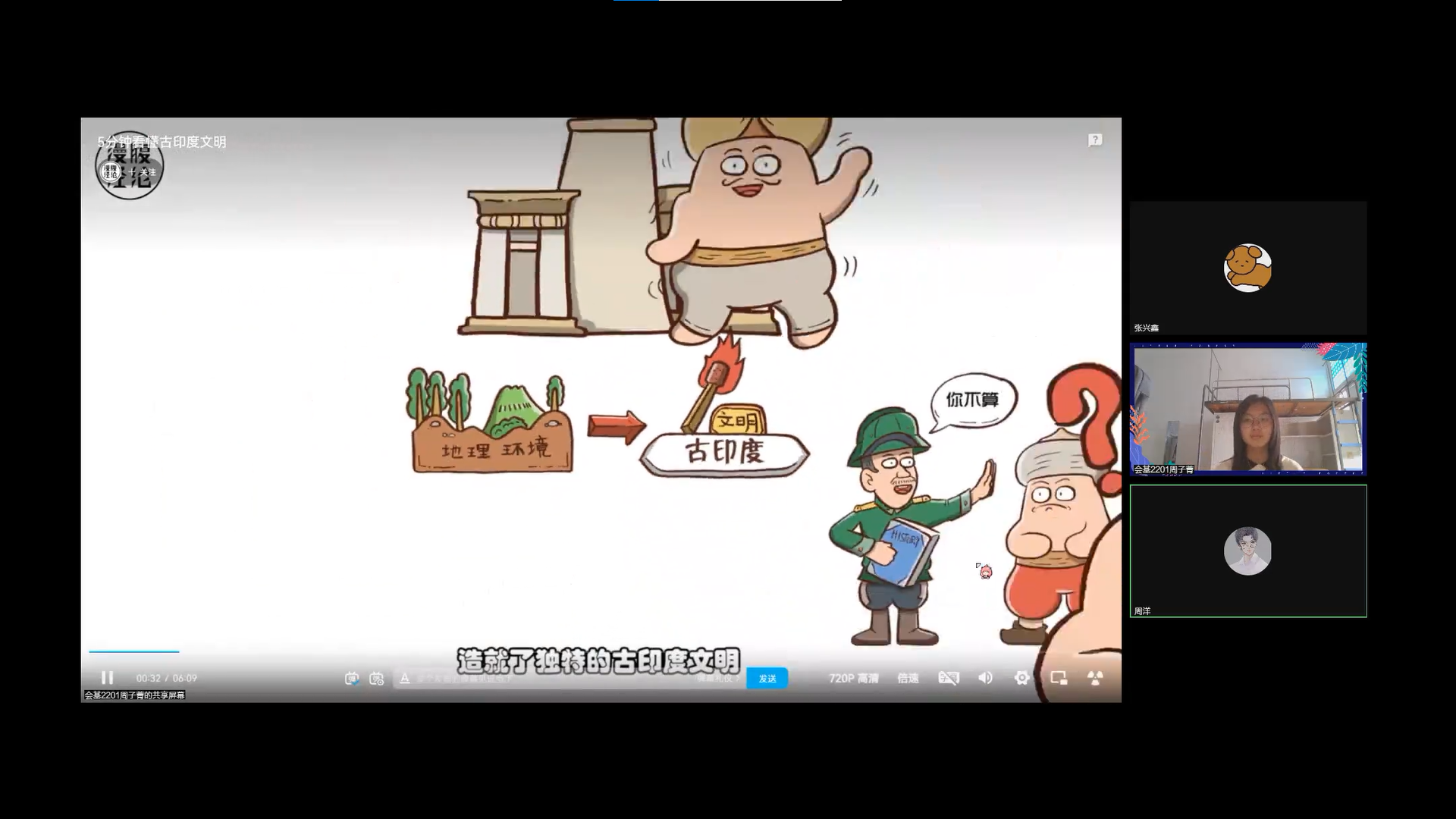 悠扬的上课铃声响起,在周洋老师的帮助下,主讲人张兴鑫向小朋友们提问,充分调动了课堂氛围,并对各大文明古国的形成条件做了简洁明了的归纳。