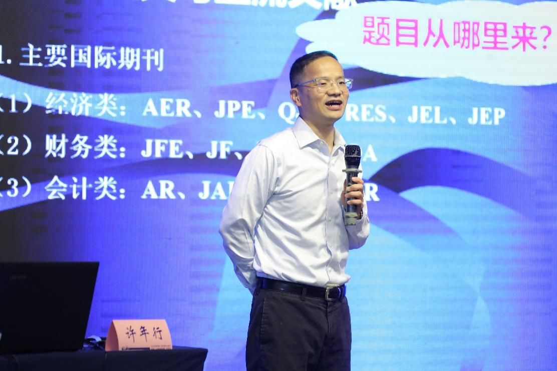 中国人民大学商学院财务与金融系主任、国家杰出青年科学基金获得者许年行教授以《立足本土、开拓前沿——公司财务论文的选题和写作》为题从公司财务论文的选题、论文写作中应注意的问题、学术研究的方法与心得三个方面介绍了自己在学术研究和论文写作方面的深刻体会,随后还就国内外知名学者的写作经验做了进一步分享。许教授鼓励青年学者们要有“板凳甘坐十年冷,文章不写一句空”的精神,静下心来好好做研究。并就论文如何既能体现中国特色的“独特性”又能体现结论适用范围的“普适性”的问题与青年学者们展开了深入交流。