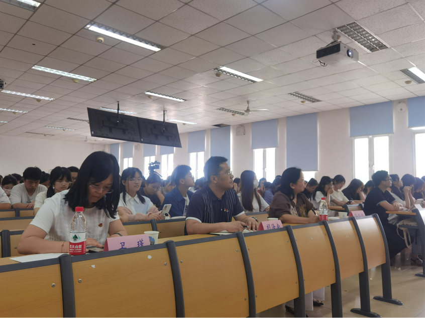 殷修林首先为会院师生简短介绍了银河近年来依法治院的成果:学院党委入选全国高校首批党建标杆院系称号;财管教工党支部入选全国高校第二批样板党支部;学院获得“三全育人”优秀试点学院;连续五年在学校年终考核中获党建工作、学科建设、本科教学、科学研究、研究生培养、职工管理与师资队伍建设、学生工作、就业创业、行政管理等9项全优。会计学、财管专业入选国家级一流本科专业建设点;第五轮学科评估工商管理获得前所未有的“理想等级”;全国专业学位水平评估专业硕士获得前所未有的“理想等级”。这些介绍增强了与会学子对院史院情的了解,提升了自豪感。