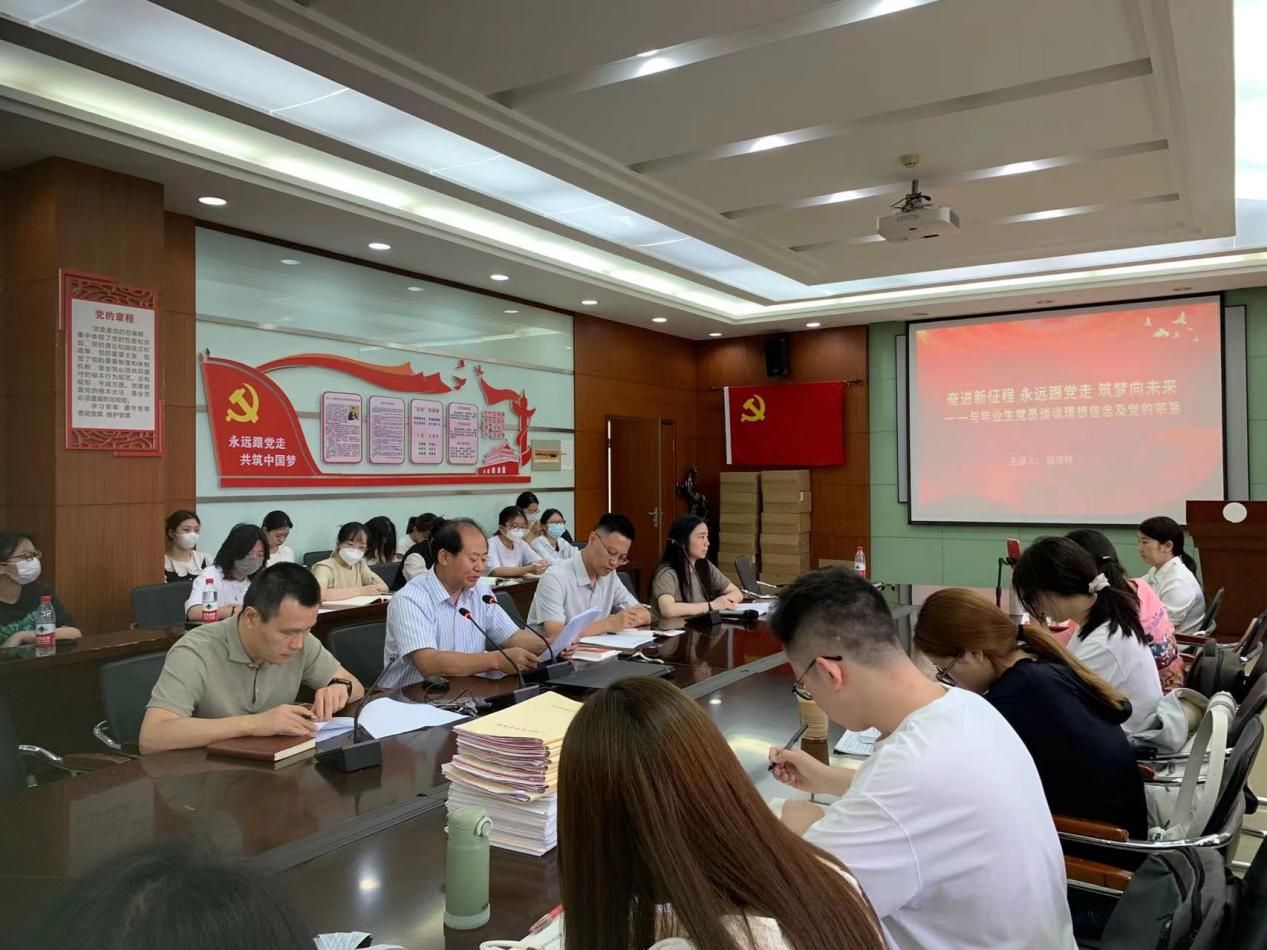 院党委书记殷修林以《奋进新征程 永远跟党走 筑梦向未来——与毕业生党员谈谈理想信念及党的宗旨》为题讲授党课。讲授内容突出了三个重点:一是坚持主题教育不放松,二是理想信念不含糊,三是坚持党的宗旨不动摇。他说,做好主题教育就要深刻领悟“两个确立”的决定性意义、坚决做到“两个维护”,这是主题教育根本性的政治要求。同时,青年的理想信念关乎国家未来。青年理想远大、信念坚定,是一个国家、一个民族无坚不摧的前进动力。迈入新时代,青年唯有以坚定的理想信念筑牢精神之基,坚信中国道路、坚守价值追求、坚定文化自信,才能成为驱动中华民族加速迈向伟大复兴的磅礴力量,才能顺利完成党和人民赋予的历史使命和时代重托。坚定理想信念,必先知之而后信之,信之而后行之。新时代中国青年作为党和国家事业发展的生力军,要以实现中华民族伟大复兴为己任,胸怀“国之大者”、传承奋斗担当。广大青年必须深刻认识到,坚定理想信念不是一阵子而是一辈子的事,要常修常炼、常悟常进,从内心深处厚植对党的信赖、对中国特色社会主义的信心、对马克思主义的信仰,在思想洗礼、在实践锻造中不断增强做中国人的志气、骨气、底气,努力创造无愧于党、无愧于人民、无愧于时代的新业绩。