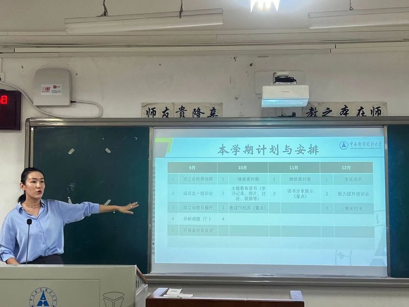 新闻网讯(学生通讯员 何静怡)9月14日,石榴籽学习小组素养能力扩展培训暨23-24学年动员大会于南湖校区文澜楼205教室举办。银河辅导员胡牧孜与金融学院少数民族专职辅导员莎吉丹姆出席本次大会。大会由妮尕主持。