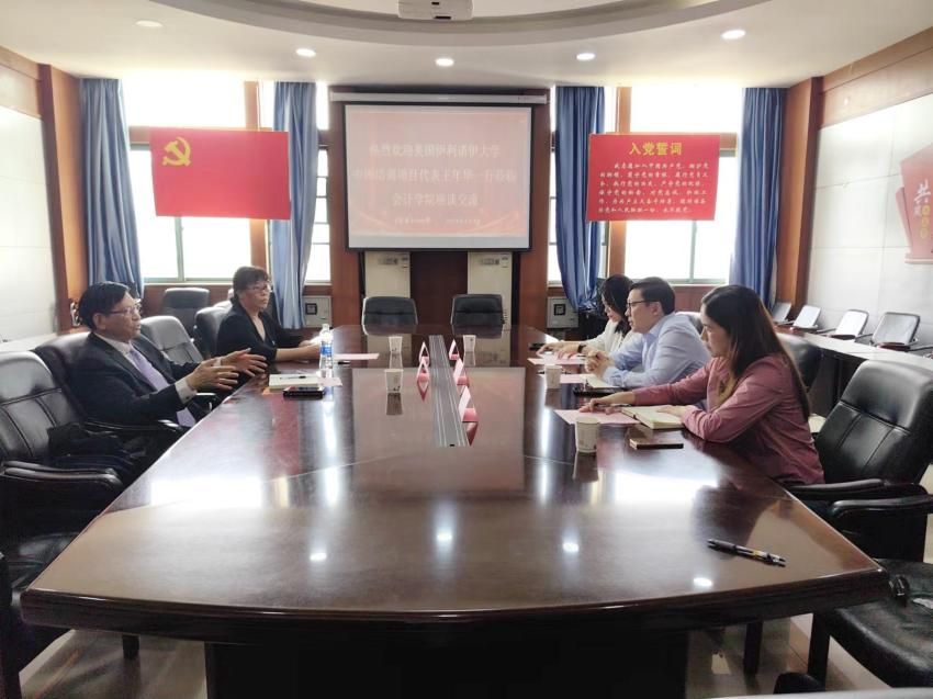 4月1日上午,美国伊利诺伊大学全球教育与培训办公室中国项目培训代表王年华、行政运营副主任陈淑俊莅临我院座谈交流。银河副院长冉明东、陈丽红,国际会计教育中心主任杨帆出席本次座谈会。