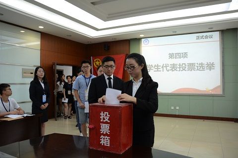 大会第二、三项,院学生会执行秘书长王宇璐宣读《yh86银河国际第一次学生代表大会选举办法(草案)》以及《yh86银河国际第十八届学生会主席团候选人建议名单》。与会代表举手表决,全票通过。