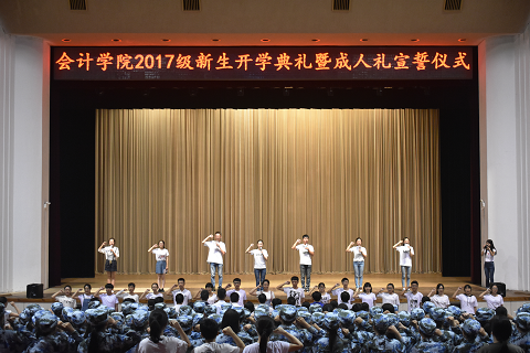 9月14日下午2点,银河在首义会堂举行了2017级新生开学典礼暨成人礼宣誓仪式。银河院长张敦力、院党委书记肖翠祥、副院长王雄元、会硕中心主任郭飞、副院长王昌锐、会计学系主任冉明东、国际会计教育中心副主任陈辉、教师代表张琦参加本次活动。活动由院党委王延副书记主持。