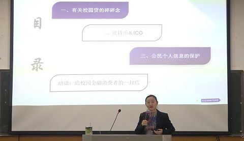 此次校园互联网金融教育讲座,从校园贷、网络虚拟货币投资、公民个人信息保护等几个问题着手,通过理论讲解与案例分析相结合的方法,对大学生的互联网金融消费行为中各类风险进行讲解,为大家起到了很好的警示教育作用。