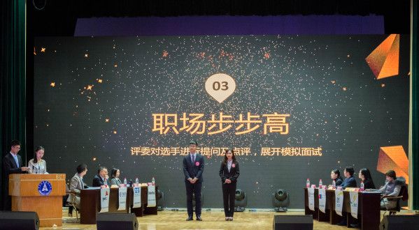 本次比赛共分为“职场初体验”、“职场再判断”、“职场步步高”、“职场终选择”和“职场转角”五大环节。在“职场初体验”中,十强选手们通过自我介绍,向HR展示了自身优势。“职场再判断”环节,十强选手分为五组,每组两位选手分别对财经时事热点进行现场点评。在“职场步步高”环节中,现场的企业HR对选手们的表现进行了细致专业的点评。“职业终选择”环节则是由各家企业评委根据选手表现做出留灯与否的最终选择。而最后的“职业转角”环节,则为更多优秀同学提供了展示自己的机会。本次比赛中,十强选手全部获得了实习offer。而后参加“职业转角”的六位同学也都如愿获得了理想企业的实习机会。