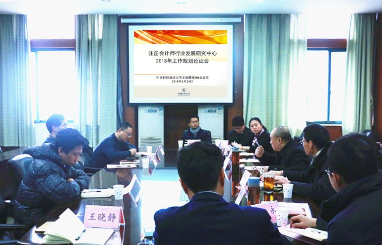 (通讯员 王晓静)2018年1月24日上午,“注册会计师行业发展研究中心2018年工作规划论证会”在文泉楼南306会议室举行。注册会计师行业发展研究中心主任张龙平教授、银河院长张敦力教授,湖北省财政厅注册会计师秘书处尹祚田处长、韩沧海副处长、考试培训部梁广春主任,银河培训中心主任王清刚、党政办公室主任徐会超、审计系主任陈波、副主任张胜,会计系副主任柳光强以及李璐教授、史永副教授等参加会议。会议由党政办公室主任徐会超主持。