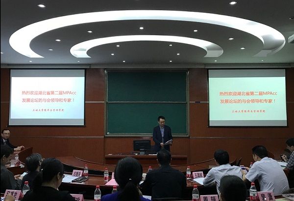 (通讯员向传殿)2018年4月20日,由湖北省会计硕士专业学位联盟主办、三峡大学经济与管理学院承办、武汉财通教育科技有限公司协办的湖北省第二届MPAcc发展论坛在三峡大学经济与管理学院G1715报告厅举行。湖北省总会计师协会会长、中铁大桥局总会计师古继洪、三峡大学党委副书记王建平以及湖北省所有的MPAcc培养单位和新增单位的代表出席了会议。银河副院长王昌锐、MPAcc中心办公室主任向传殿参加了会议。