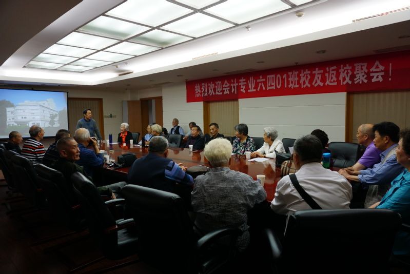 万莉副主任代表学校热烈欢迎校友们的到来。万主任表示校友永远是学校最宝贵的财富,会计64级校友通过自己的勤奋努力和聪明智慧,为国家和社会的发展做出了杰出的贡献,为在校学生树立了学习的榜样,衷心祝愿校友们一切顺利。