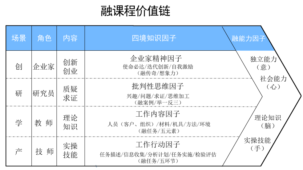 企业专家李超老师,结合企业实践经验和现在高校人才培养,专注研究高校融课程,首次提出了跨学科“四境融课程”的概念,融能力四因子4H(手脑心意)过程性评价、质性评价,评价相对于一个任务完成、或一个问题解决。四项不能平均、不能合计。李超老师详细介绍了会计职业 职业描述 融能力人才培养方案,同时也介绍了四境融课程理念及价值链,如下: