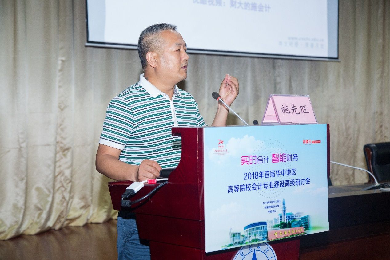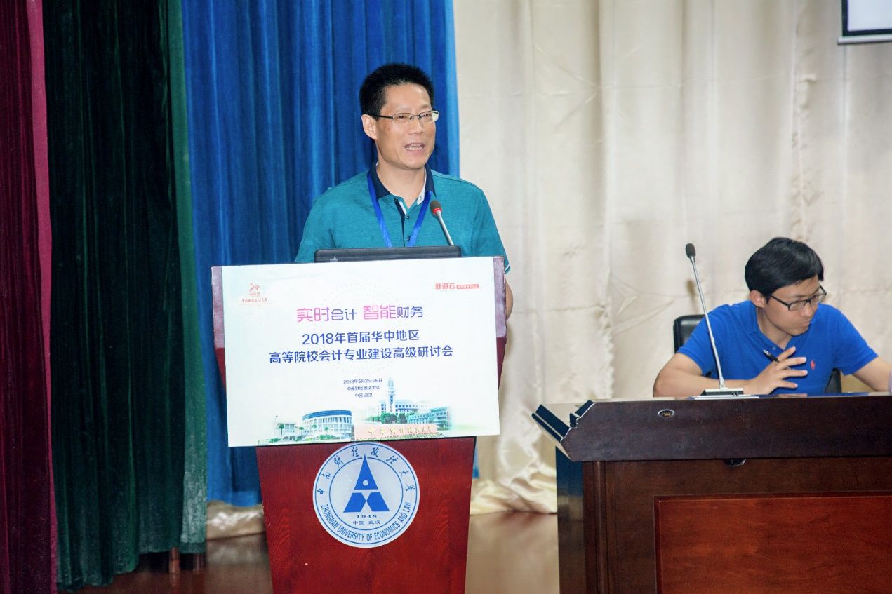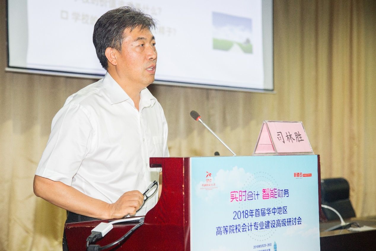 5月25日下午,2018年首届华中地区高等院校会计专业建设高级研讨会下午分论坛一由协办单位河南财政金融学院会计系主任马荣贵教授主持,会议由商丘师范学院校长司林胜教授、中南财经政法大学施先旺教授、河南财政金融学院李爱红教授、新道科技股份有限公司专家桑大勇老师做主题分享。