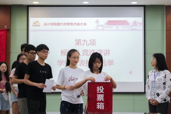接下来是大会第九项,候选人竞选演讲及学生代表投票选举。在候选人激情洋溢、热情真挚的演讲过后,各年级学生代表有序领取选票,并进行了民主投票。最终,大会监票人公布了选举结果及《yh86银河国际十九届学生会主席团代表名单》,至此,大会圆满落幕。