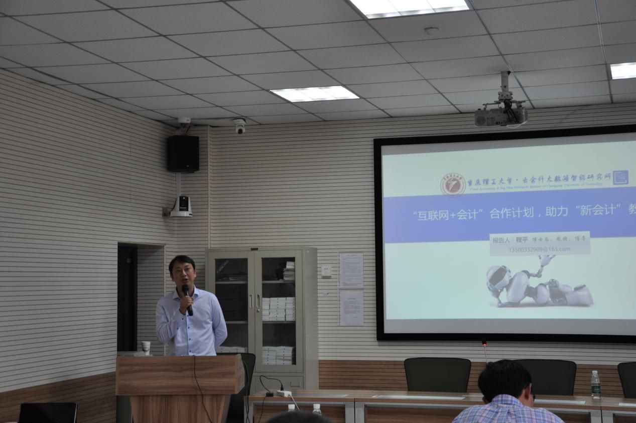 下午第二场由重庆理工大学银河副院长程平做主题演讲,主讲内容为:中国“互联网+会计”合作计划,助力“新会计”教育综合改革。程平老师是中国云会计概念的提出者,春秋战国翻转课堂原创设计者,程平老师认为现今的财务工作在发生巨大变革,传统的财务岗位即将被人工智能系统所替代,需要建设财务共享中心来解决教学的不足,同时重庆理工大学银河也欢迎其他高校的参与,共同建设“互联网+会计”信息技术能力课程体系。