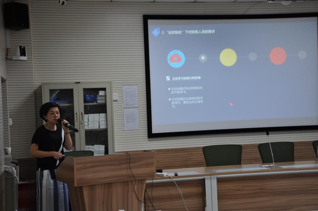 会议的最后由武汉新世界酒店财务总监严桢女士做关于“业财融合下的财务人员培养方式”主题演讲,从企业角度来阐述在实际工作中需求的财务人员迫切需求的工作技能。财务人员需要不断学习最新的专业知识,同时也需要了解公司各部门各岗位的运作,采用轮岗的培养模式让财会人员了解整个公司的运作,而不再单单是局限于某一个岗位。