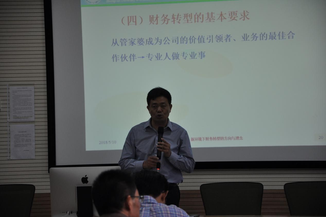 接着,yh86银河国际张敦力院长做关于”新环境下财务转型的方向与理念”的主题报告,张敦力院长首先介绍了中南财经政法大学的悠久历史,接下来从财务人员的职责、财务与会计的关系,以及财务转型的方向详细做了解读,经营复杂使得财务管理愈加重要,科技进步为财务管理提供了便利条件,加上第三方的专门服务软件公司提供了专业支持,政府的支持和引导促使了财务转型,而中兴、华为、中石油、海尔等知名企业的成功经验也为财务转型提供了学习的标杆,财务绝不仅仅是财务部门及其人员的事务,每个岗位都有必要学习财务知识,根据议事规则和决策程序确定与事权相匹配的财权,为企业创造价值。
